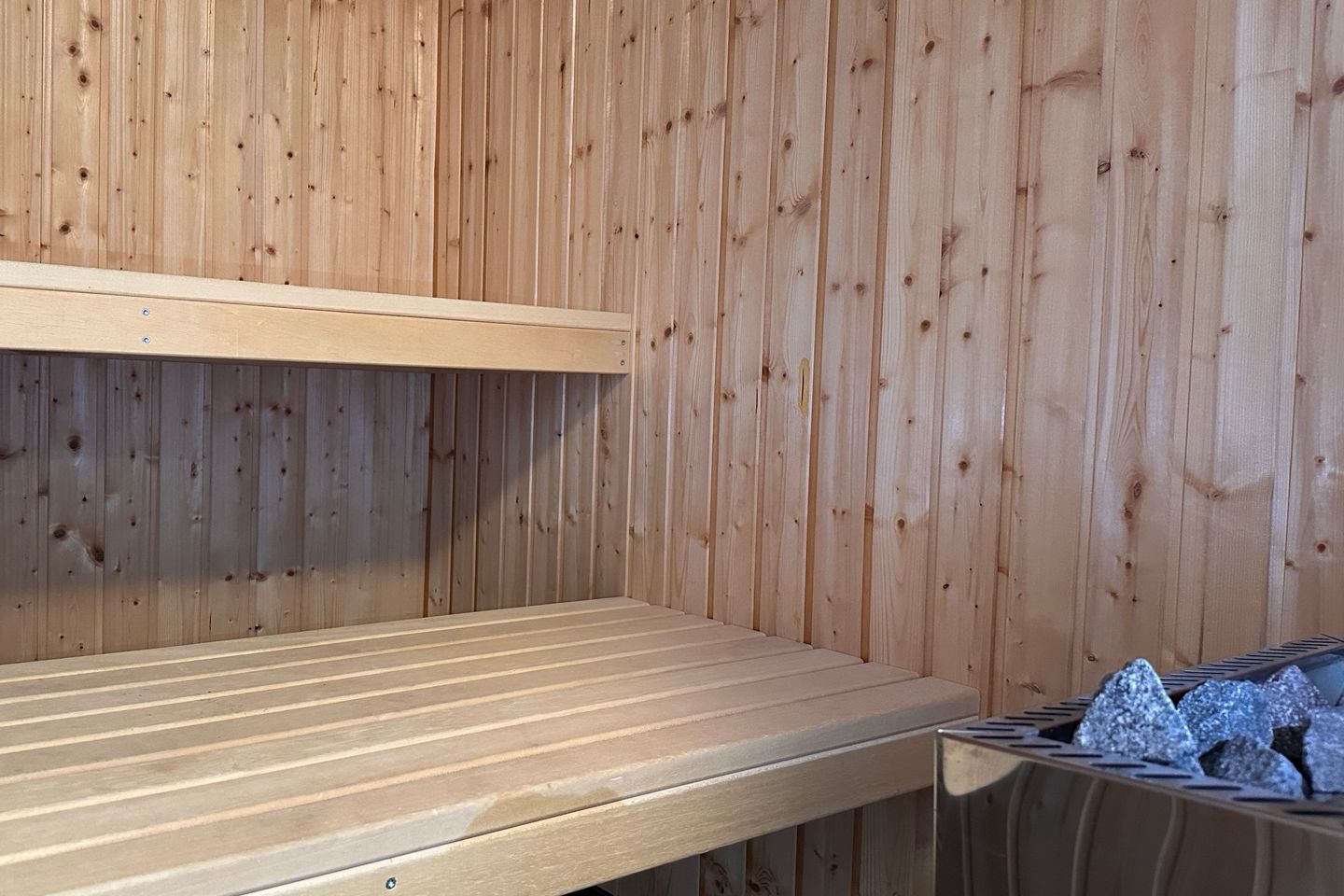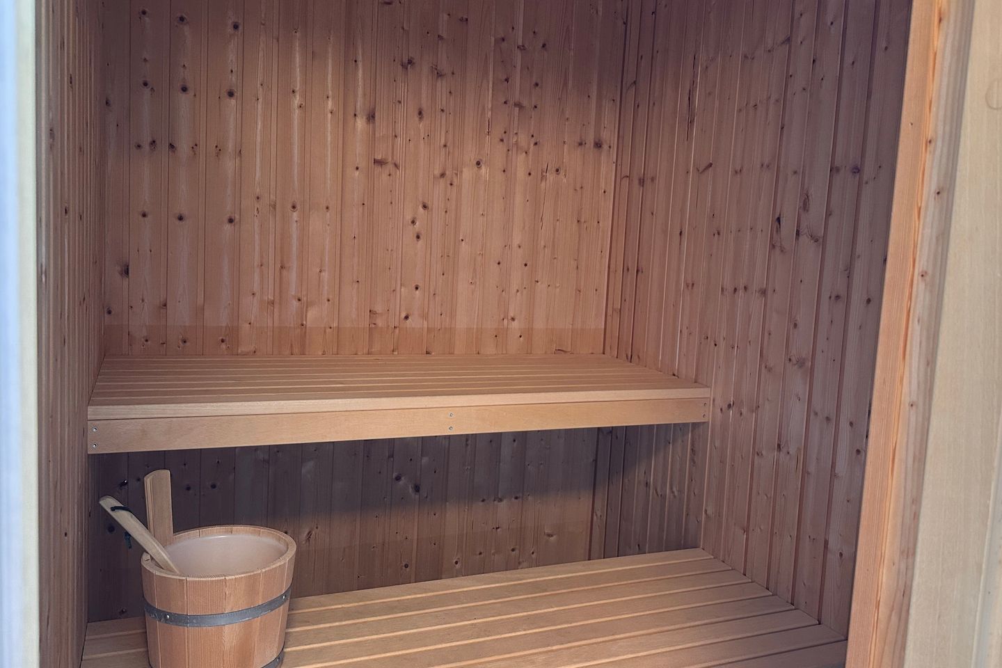 Im Obergeschoss stehen euch ein stilvolles Tageslicht-Badezimmer mit Badewanne, Fußbodenheizung, Regendusche, WC, Waschtisch, Kosmetikspiegel und Föhn sowie ein separates Gäste-WC zur Verfügung. Ein Highlight ist die eigene Sauna im Badezimmer des Hauses. Auf dieser Etage befindet sich ein weiterer Balkon, der sich besonders nach einem Saunagang anbietet, um Frischluft und Meeresklima zu genießen.